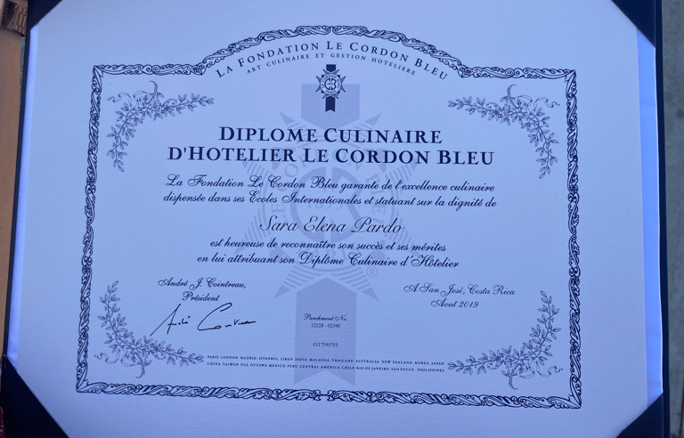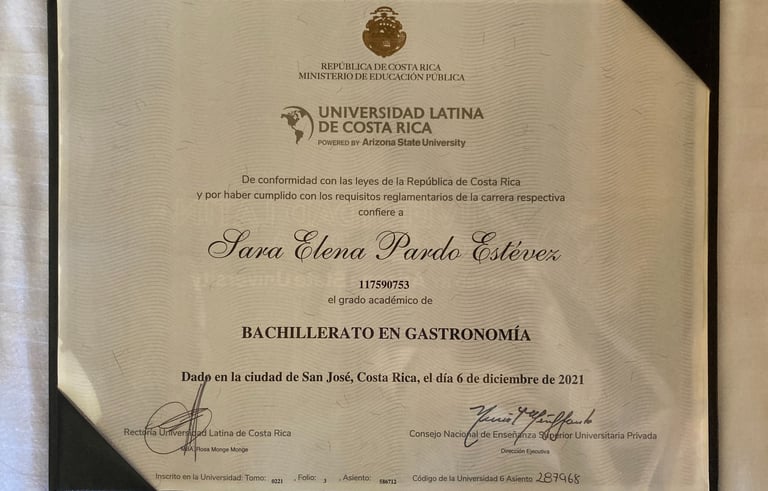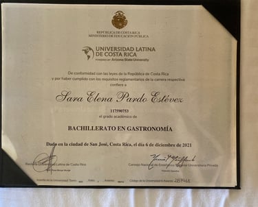 In 2021 I graduated university with a 4 year bachelor’s degree in gastronomy at Universidad Latina de Costa Rica. With a Cordon Bleu diploma.